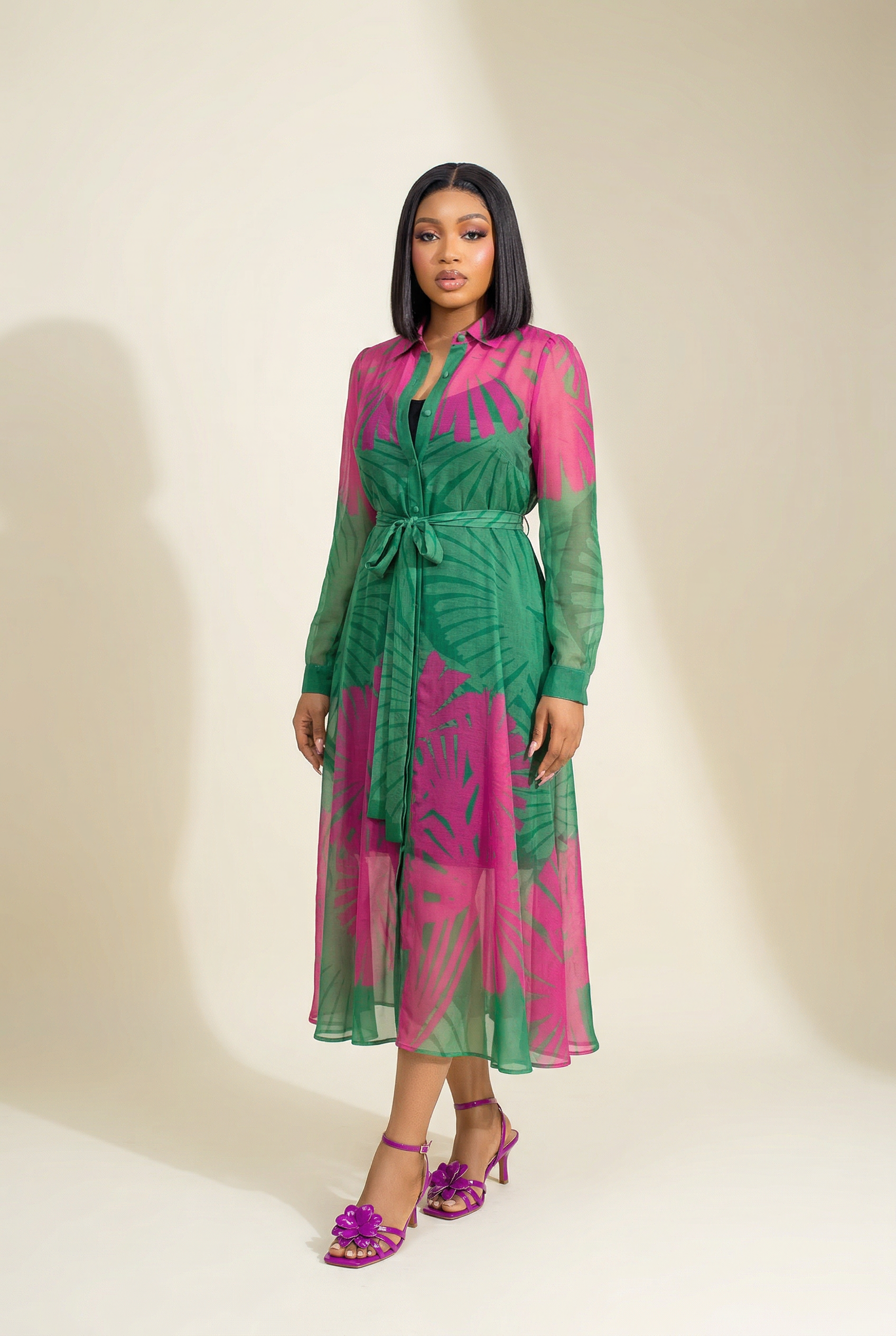 Long A Line Shirt Dress With Long Sleeves
