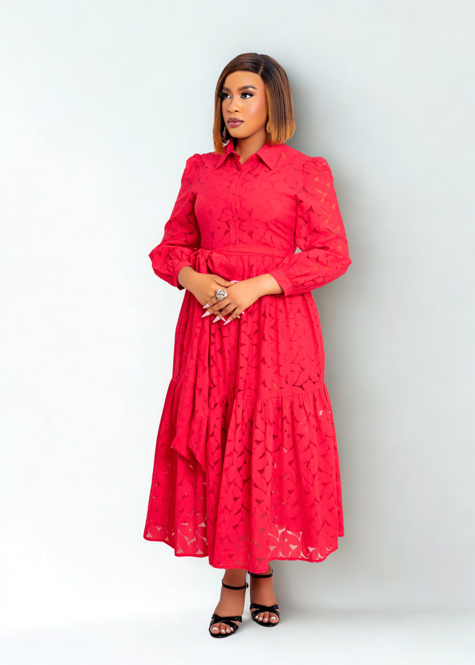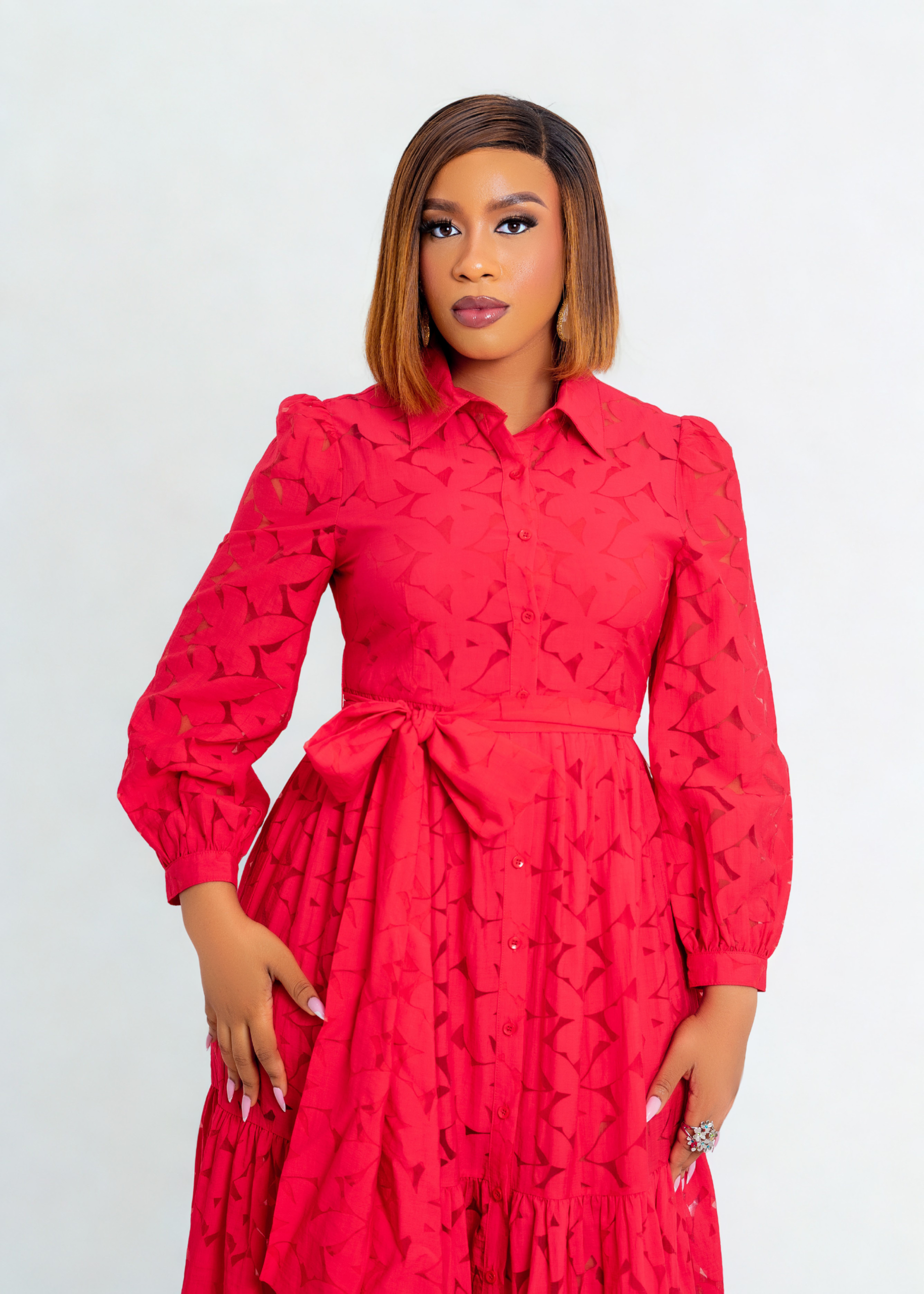 A button-down maxi shirt dress designed with a classic collar and a matching fabric belt to define the waist. It comes with an inner camisole for added coverage and a comfortable fit.